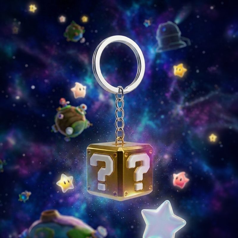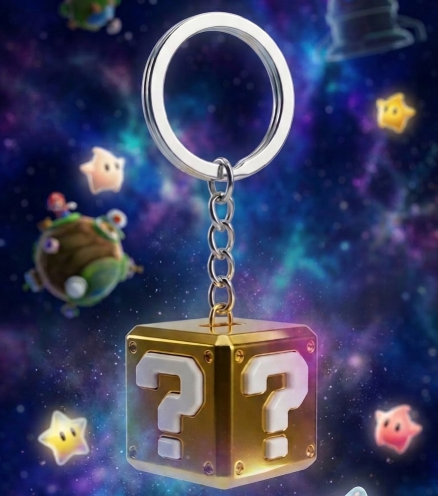 Chaveiro Cubo Super Mario Dourado – Alta Qualidade e Acabamento Premium